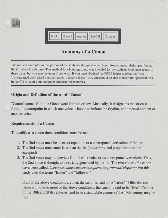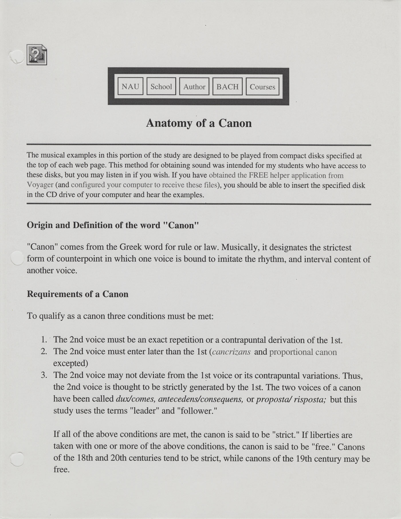 Tim Smith, “Anatomy of a Canon,” c.1996, printed article, paper