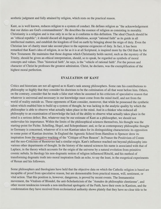 William Turner, “Philosophy of Immanuel Kant,” 1913, printed article (artist’s notes c. 1995-1997), paper